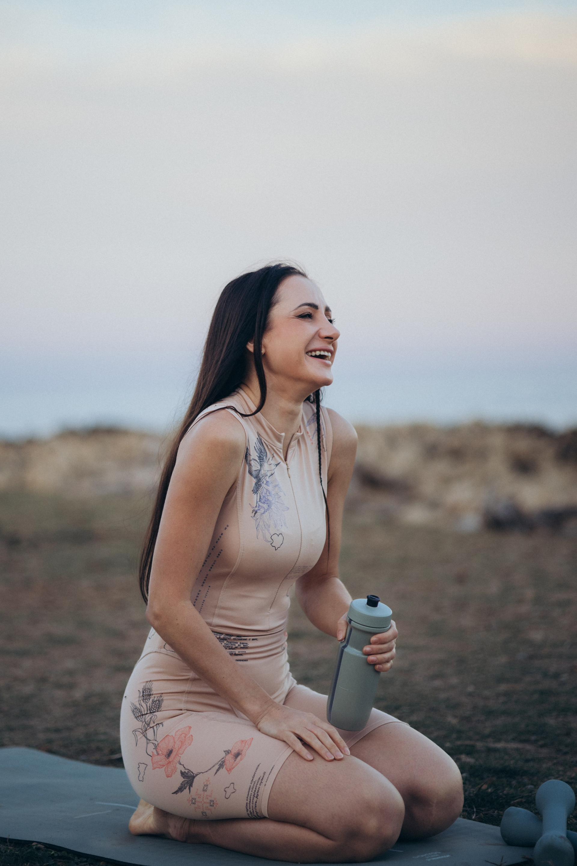 Начали мы спокойно — с дыхания, растяжки, лёгких упражнений. Я всегда стараюсь, чтобы человек не позировал, а просто жил в моменте. Катя сразу вошла в ритм — двигалась естественно, улыбалась, ловила солнце и ветер.